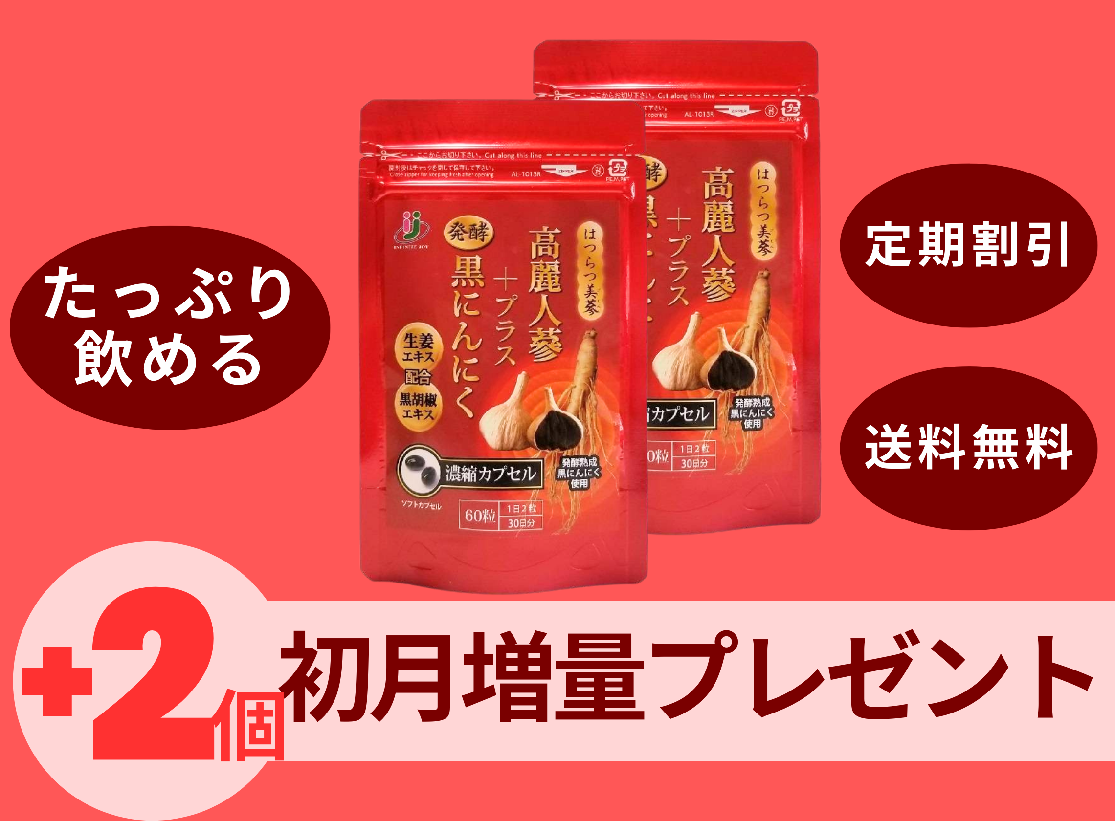[初回2個プレゼント!!]毎月2個定期 高麗人参プラス発酵黒にんにく