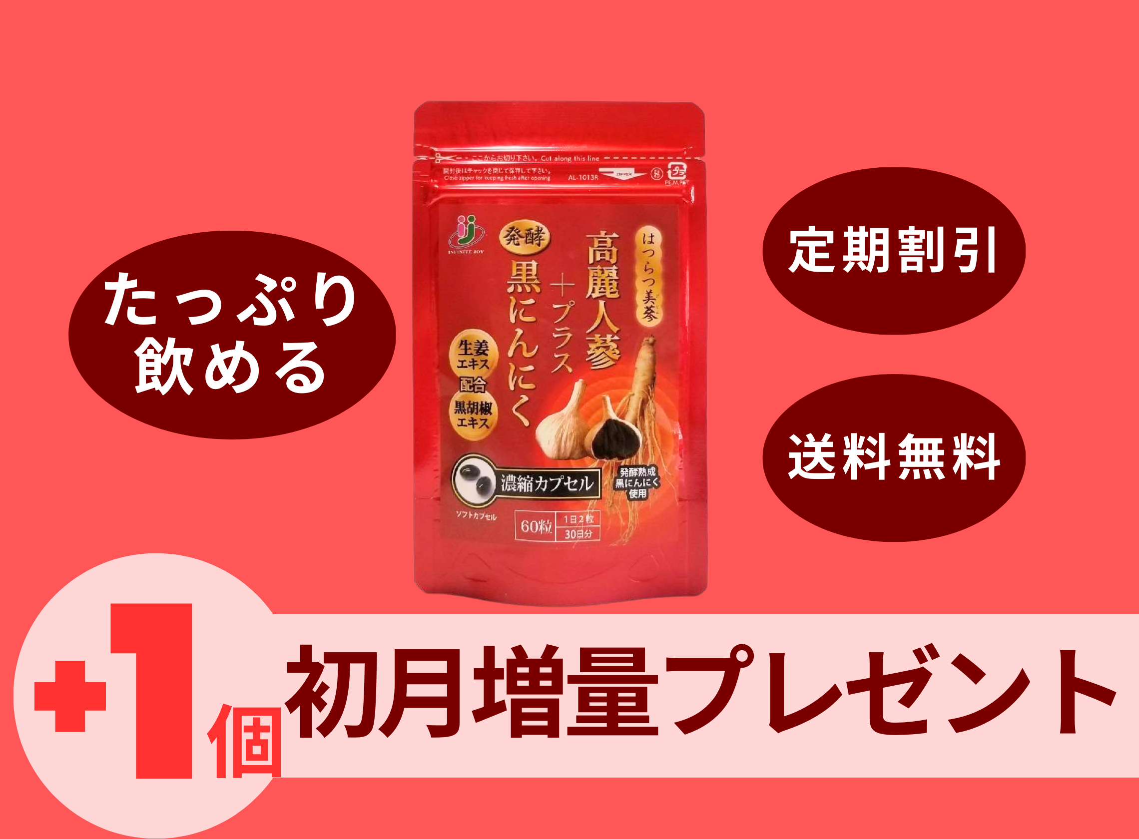 [初回1個プレゼント!!]2カ月に2個定期 高麗人参プラス発酵黒にんにく