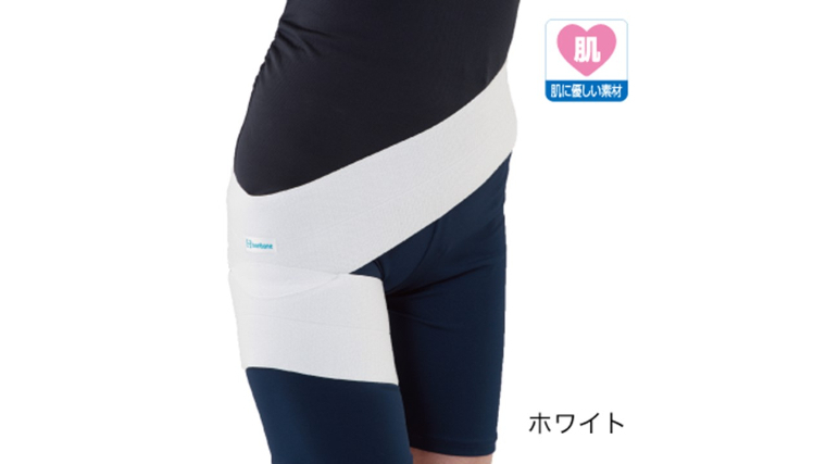 ・伸縮素材のベルトで、股関節をピンポイントに圧迫
